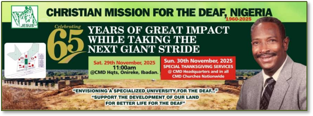 The year 2025 marks the 65th anniversary of our school for the deaf in Nigeria, the country of my birth. The celebration will take place at our headquarters in Ibadan during the last weekend of November, just as this letter goes to press. Regrettably, I will not be able to attend in person, as I will be flying to Zambia on the 29th. However, I will be able to join the first portion of the celebration via livestream. And not only does 2025 mark the school’s 65th anniversary, but if my father were still alive, it would also have been his 100th birthday! Oh, how far the Lord has brought us!